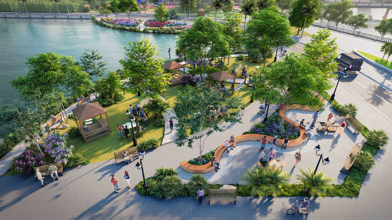 Hệ thống tiện ích dịch vụ: Hệ thống nhà hàng; vườn nướng BBQ; Trung tâm Sự kiện & Cafe ven sông; Bể bơi Aqua Park & Nhà hàng; Thuyền kayak; Thuyền thiên nga; Chợ Vàng mở rộng & TTTM…